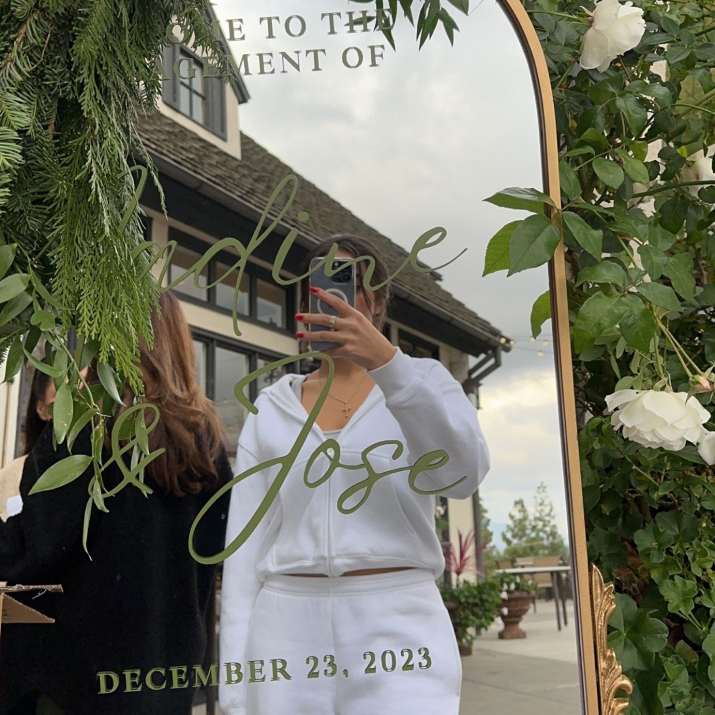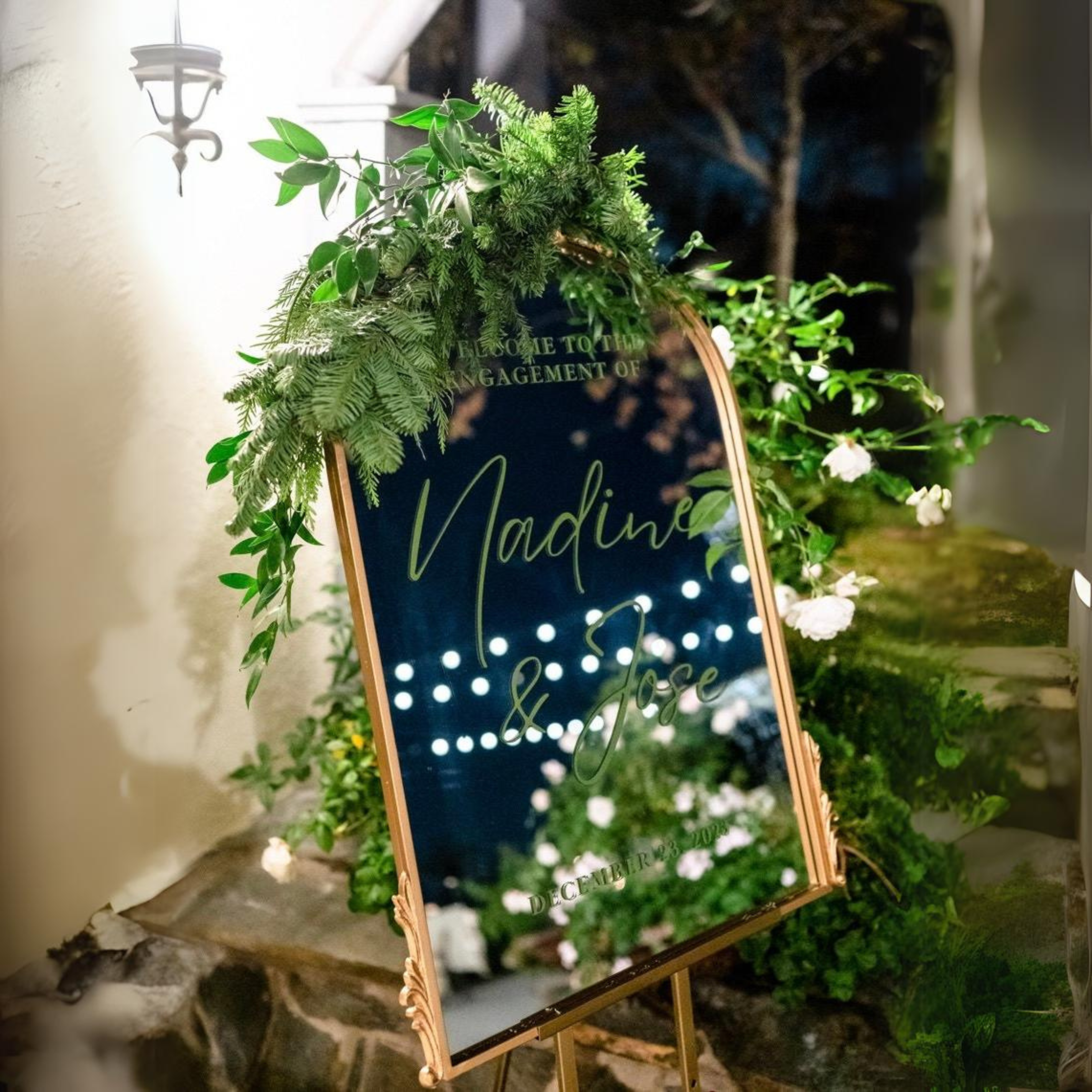 An engagement party is a festive celebration held to honor the new relationship status of a recently engage couple. It serves as an opportunity for friends and family to come together, share in the excitement, and toast to the couple’s future before the wedding planning begins. Although typically more relaxed than the wedding itself, engagement parties can be intimate gatherings or larger events, filled with laughter, love, and the promise of a new chapter. If you are looking for the perfect engagement party welcome sign, Magnolia Dreams has just the wedding mirror for you!
