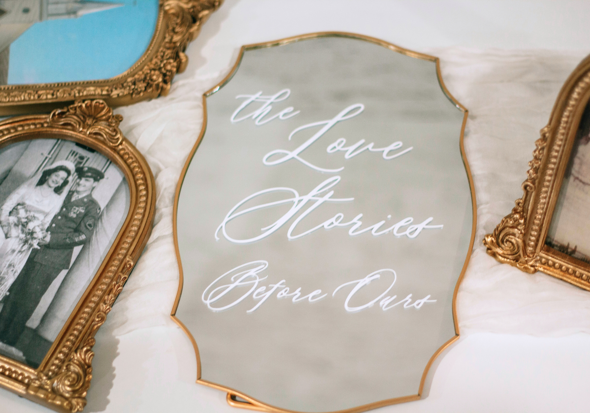 • Elegant Gold Framed Displays: Showcase your parents’ or grandparents’ wedding photos in gold frames, symbolizing the continuation of tradition and love.